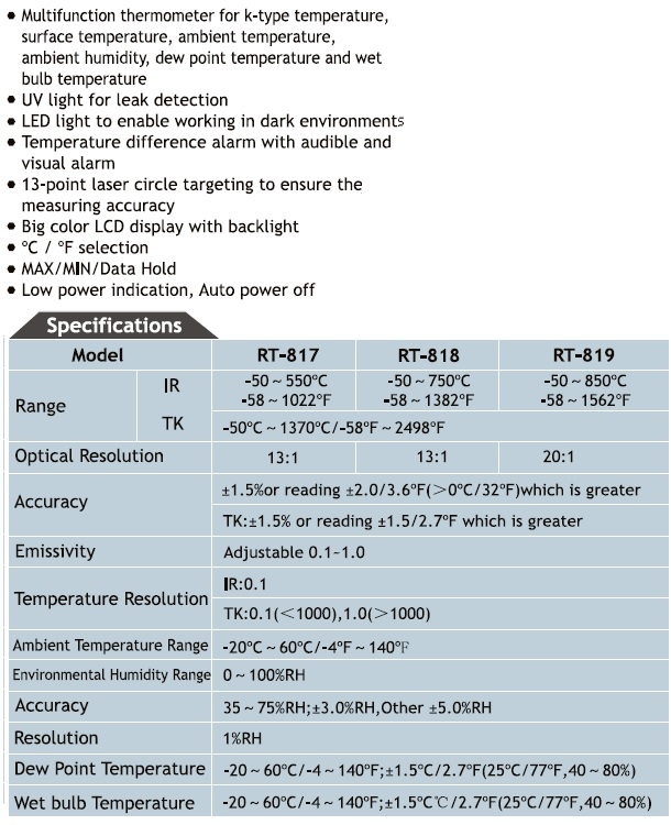 Dew Point InfraRed Thermometer With Audio/Visual Alarm              Catalog No. 101414