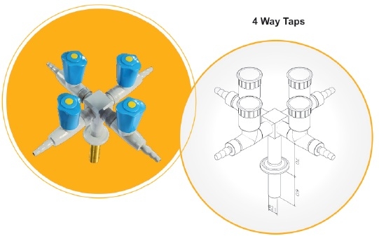 Gas Tap, Euro, 4 Way for Pharma & Lab                          Catalog No. 101184