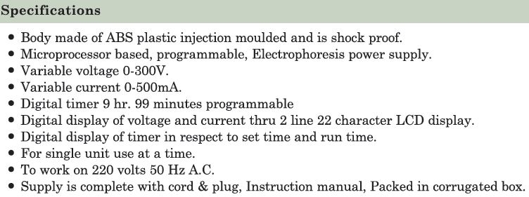 Electrophoresis Power Supply, Digital, Variable                            Catalog No. 100784