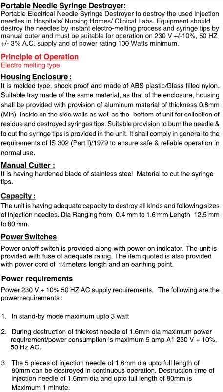 Needle/Syringe Destroyer, Electrical  2                             Catalog No. 100780
