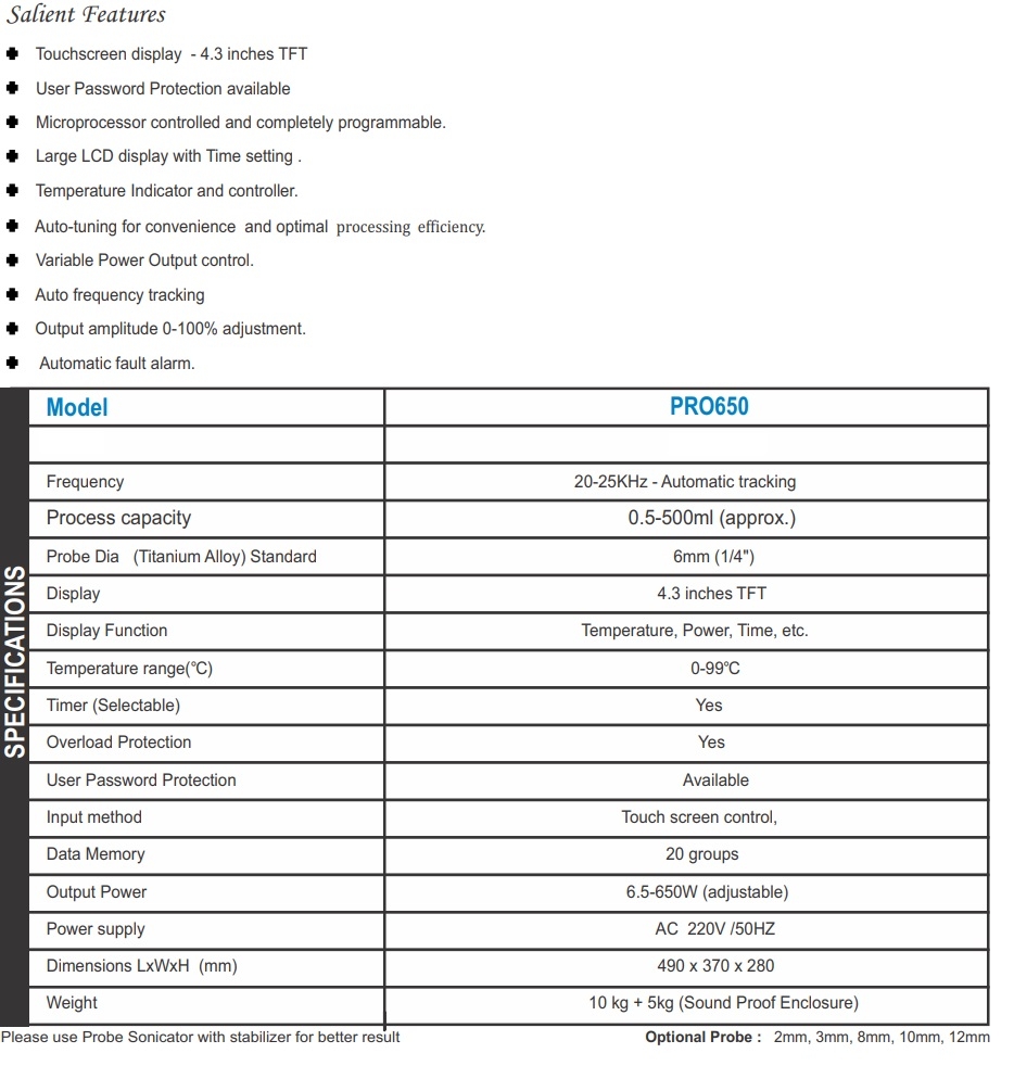 Probe Sonicator, Touch Screen                             Catalog No. 101128