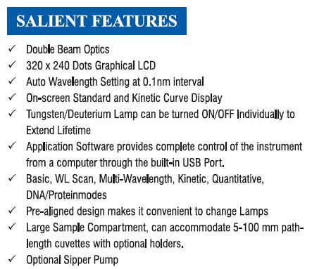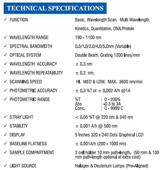 Double Beam Microprocessor Based Ultra Violet and Visible Range (UV-VIS) Spectrophotometer – Model 2203