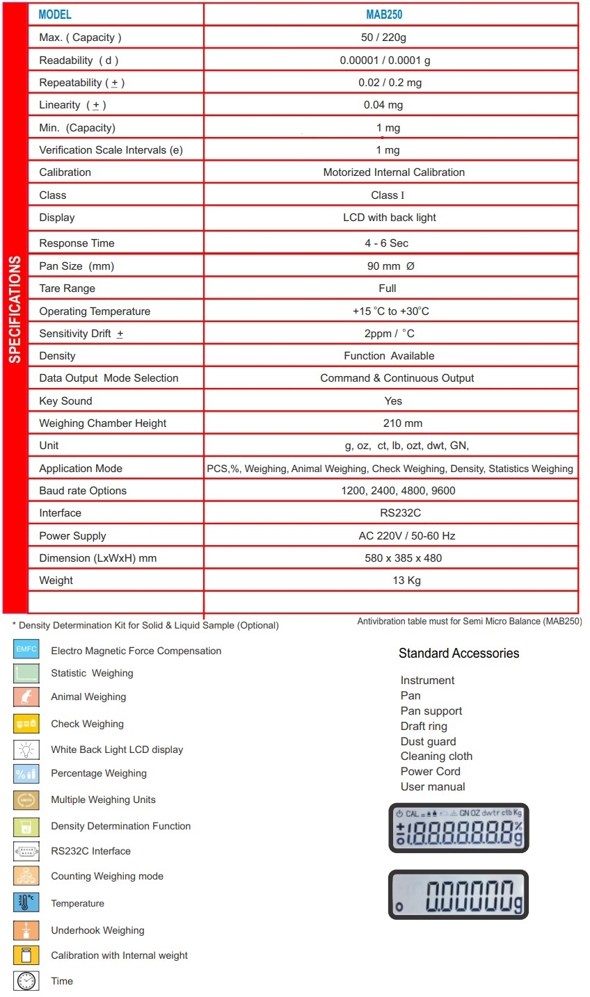 Semi Micro Balance 50/220g - 0.01/0.1mg                       Catalog No. 101130