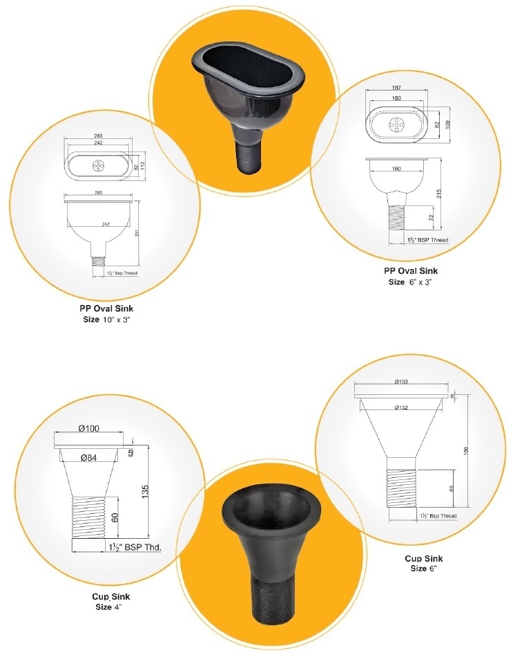 - Sink are available in various sizes & are made from highly chemical resistant PP material with superior surface finish & in black colour.