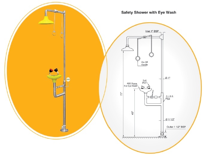 Safety Shower with Eye Wash, for Pharma & Lab                  Catalog No. 101189