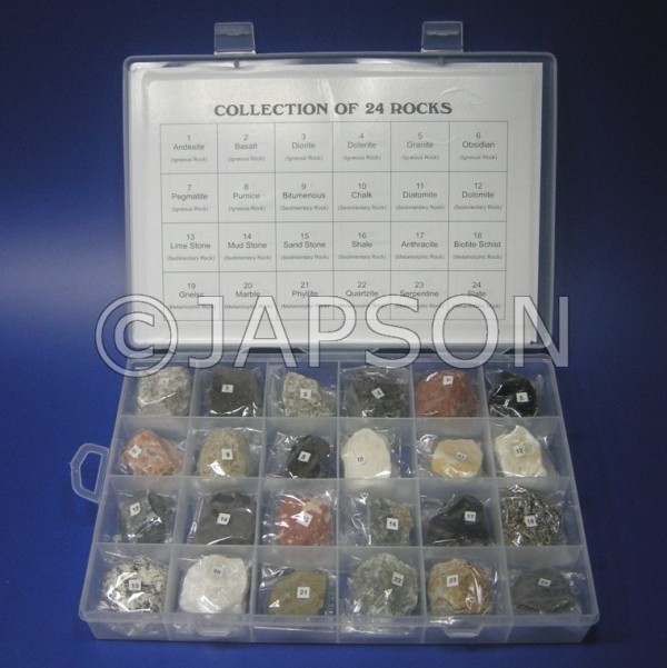 Rock Samples, 24 pcs/set, (Minerals of 3 rock types)
