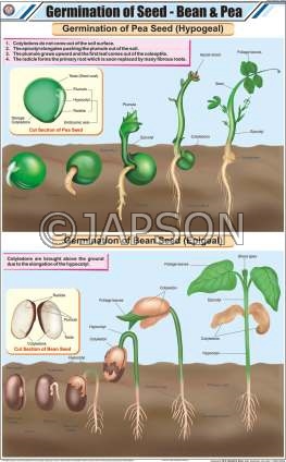 A. Charts, Photosynthesis B. Charts, Germination of Seed- Bean & Pea
