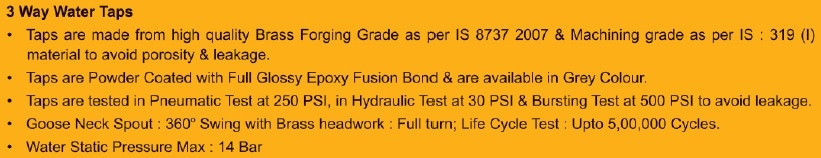 Water Tap, 3 Way J Type , Euro, for Pharma & Lab                         Catalog No. 101174